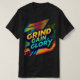 This vibrant and energetic design features the motivational phrase "Grind, Gain, Glory" in a bold, multi-coloured font. The text is stylised with dynamic lines and shapes, creating a sense of movement and energy. The overall aesthetic is modern and eye-catching, making it an ideal design for a t-shirt or other apparel.