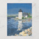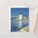 Grindle Point Lighthouse postcard. This postcard features Grindle Point Lighthouse gleaming in the late morning sun of a spring day in Islesboro, Maine. The painting uses a brilliant palette of blues, greens, greys, and oranges to create a beautiful, calm view of the unique square lighthouse tower and lightkeeper’s house.