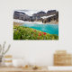 This photo features a stunning turquoise coloured water at the base of Grinnell Glacier in Glacier National Park in Montana.