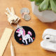 A White Horse with Blue Spots and a Pink Mane prances with happiness and a big smile on his cute face.