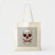 The design shows the cartoon paiting of a grinning grey skull with red-black eyes and a red-black cavity for the nose. The skull shows an ugly grin and is placed on a grey background. You can easily change the colour of the background and insert your own words by clicking on the "customise" button.