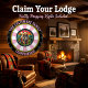 A circular grizzly bear design in the forest, framed with a sharp target overlay.