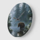 This large clock showcases a powerful grizzly bear walking through a misty forest, evoking a sense of wilderness and solitude. Roman numerals overlay the image, adding a touch of timeless elegance to the rustic, nature-inspired design. This piece is perfect for nature lovers, cabin owners, or anyone who appreciates rugged wildlife art with classic details.