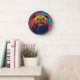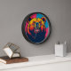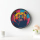 The size of the clock is dramatic and the abstract alcohol ink design is soothing and intricate at the same time. I chose the black frame that adds pop to the blue and gold design. The gold printing would be better in a slightly darker or larger font. I love it and I’m looking for just the right place in ny new apartment. I would recommend this clock for a personal gift or a present. I feel that the quality is excellent for the money! I’m a bit of a clock nut so I’m pretty particular about my purchases. The clock is larger in diameter than many if the clocks I have, so it stands out very well. I think a slightly darker printing color and a moderately larger size would best suit a professional decor or add more impact in a work place item.