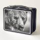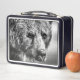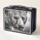 This is a standard metal lunchbox that appears to work just fine. We designed this box ourselves with an uploaded photo and custom text on the front and back. It looks absolutely beautiful except the front of the lunchbox is not centered like it shows in the photo. The print borders don't align with the inset flat part of the box where the preview photo online showed it perfectly centered in there. The back looks nice and centered though.