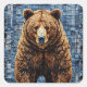 Vibrant artwork depicting a bear with a rich, textured fur coat, set against a patchwork background featuring blue and grey tones. The bear stands imposing and lifelike, capturing attention with its realistic features.