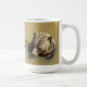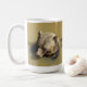 A big ol' grizzly bear taking a swim in a murky pond on a hot day.