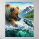Grizzly Bears with steelhead trout salmon 16x20 Poster