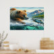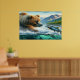 Grizzly Bears with steelhead trout salmon 36x24 Poster