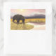 A digital painting of a grizzly bear approaching a pond while the sun descends over distant mountains.