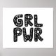 Vector GRL PWR typography illustration of a girl power concept with floral elements. Black and white women`s march feminist black text on a white background. Vector feminism sticker, t-shirt print, greeting cards, stationary. Funky and unique GRL PWR doodle concept.