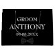 Modern, elegant, masculine, black and white groom large gift bag. Perfect for Wedding favours. You can personalise it with your name and date.