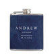 Dark blue watercolor wedding flask with beautifully painted watercolor background. Fully customisable!
