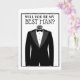 A headless mannequin wearing a stylish black and white tuxedo and black bow tie is framed by a black border and has the words will you be my best man below him. The overall feel is minimalist style and elegance. This is ideal for summer; spring; winter and fall weddings. Feel free to delete or move the templates around and to change the size and style of the fonts if preferred.