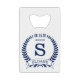 This bottle opener is perfect for the groom. It is traditional yet modern with a blue laurel wreath and banner with the wedding date, title/job and first initial and first name all in blue. They'd be great for a bachelor party or weekend. The title can be changed to best man, groomsman, usher, etc.