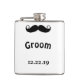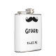 Groom Moustache Hipster Wedding White and Black with Wedding Date Custom Flask