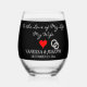 Groom to Bride Monogram Black Silver Rings Stemless Wine Glass