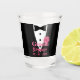 Fun shot glass for the groom. Black tuxedo with a pink flower in the lapel drinkware to personalise for the groom with their name and wedding date.