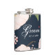 Groom Whiskey Flask Baby Pink Cosmos on Navy