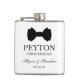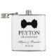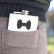These 6 oz. flasks are a great favour for the groomsmen in your wedding. If all your wedding party will be wearing formal suits or tuxedos with bow ties this design with a traditional double bow tie in black would be perfect. They'd be great for a bachelor party or weekend.
