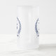 These 16 oz. frosted glass beer mugs are a great favour for the groomsmen in your wedding. They are traditional yet modern with a blue laurel wreath and banner with the wedding date, title/job and first initial and first name all in blue. They'd be great for a bachelor party or weekend.