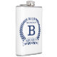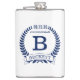 These 8 oz. flasks are a great favour for the groomsmen in your wedding. They are traditional yet modern with a blue laurel wreath and banner with the wedding date, title/job and first initial and first name all in blue. They'd be great for a bachelor party or weekend.