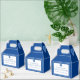 Perfectly classic royal blue and white seersucker striped groomsmen hangover relief kit favour box that is customisable.