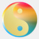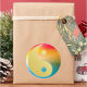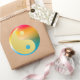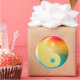 Round sticker with an image of a yin and yang symbol that is half gold and half metallic red, green, blue and yellow. See matching confetti, favour bag, favour tag and wrapping paper. See the entire Psychedelic 60s Sticker collection in the INVITES | Stickers & Labels section.