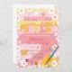 Girl groovy birthday invite. Retro, 70's, hippie, daisies, sparkles.