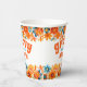 A groovy retro party paper cup. This colourful 60's/70s vibe floral design features flower power florals in orange and blue. Easy to customise with your own groovy or retro themed party details.