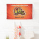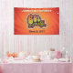 60's Party Banner featuring a groovy style typography of "60's Party''. This design includes elements of red, orange, yellow, bright green and dark purple, spiral starburst, and designs inspired by the 60's. Include a template for personal customisation.
