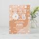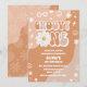Celebrate your little ones milestone with this retro-inspired first birthday invitation! Featuring a warm peach background, playful 70s-style fonts, peace signs, daisies, and stars, it sets the perfect vibe of peace, love, and fun. Ideal for hippie, boho, or vintage-themed parties, this eye-catching design ensures guests feel the groovy spirit from the moment they receive it.