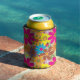 Groovy 70s Hippie Floral Retro Flower Power Can Cooler