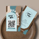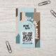 Trendy business card design featuring retro fonts, abstract pattern background in neutral blue and beige tones and space for your custom QR code. Create groovy scannable QR code business cards for your design, photography, beauty spa or any other business using this modern calling card template. You can add any link to the QR code to promote your social media accounts, website or a special offer. All colours are editable when editing using the zazzle design tool.