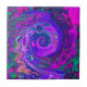 Groovy Abstract Retro Magenta and Purple Swirl Tile