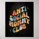 This retro-style poster features the bold and edgy quote, "Anti-Social Mommy Club." The phrase is written in a funky, retro font that evokes a sense of rebellion and individualism. The poster's background is a vintage brick distressed black wall.