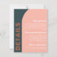 A modern wedding detail enclosure card bursting with pop of colour teal blue green, orange and peach of arch shapes. Designed with colourful abstract arch elements and bold fonts giving a funky groovy boho retro vibe perfect for spring, summer or fall wedding. The colour of the arch shapes can also be customised.