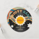 The invitation features a circular shape, just like a real vinyl record, complete with grooves and a central label that can be customised with your personalised message. The vibrant colours and psychedelic patterns on the invitation evoke the playful and energetic spirit of the '60s and '70s, setting the perfect tone for a memorable baby shower party.