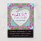 Funky groovy Save the Date postcard in pink purple green and aqua blue fun happy energy design. Customisable save the date announcement postcards designed in a unique and alternative design. Would suit Hippie, Bohemian, Psychedelic, 60s style.themed wedding or engagement .