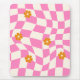 Groovy Daisy Floral Heart Chequerboard, Y2K 90s Mouse Pad