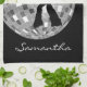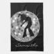 Funky black custom personalised kitchen towel with a black silhouette of a groovy singer dancing on a fabulous sparkling silver retro disco ball background @ www.vectorportal.com Customise with your own text - lots of colours & fonts to choose from. An awesome orginal gift for teenagers and funky music lovers!