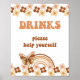 DRINKS PARTY SIGN - GROOVY RETRO HIPPIE THEME - 8X10".