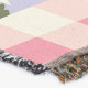 A quality printed throw has its advantages. This is a much finer weave throw than its loopier cousins, and though lighter, it is worth the investment for custom room accessorizing. The back is much prettier than the typical brown, and the fringe on the long sides very vivid, the selvage nicely done. Before photographing, I washed the throw in cold water, delicate, with a thicker woven throw the same size. On tumble dry low, this throw was dry in half the time as the other. This is a very practical quality if you use throws for furniture covers or to wrap up in frequently. The sleekness of the fabric makes it a great layer for accenting or protecting without the feeling of sitting on too much stuff. Perfect for napping or when you feel a light chill coming on. The color printing is beautiful and on this fabric, matched the design and color of my Photoshop image. This is an advantage for blending room fabrics and colors. The fringe on the short sides prints the colors from the design image and therefore varies from the side fringe. I streaked a white fractal line through the plaid pattern to give the illusion of weaving. This printed as crisp as an illusory thread, and put some white in the short side fringe, showing another advantage of print vs loomed- for artistic purposes, line lines, detail, and color integrity can be planned and preserved. My loomed throws have color limitations and more of a needlepoint texture. Print throws reproduce an exact image. The throw felt a little stiff straight out of the package, but this went away in the first delicate wash. Of course I searched the wash water for ink or bleeding and there was none.
