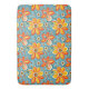 Bath Mat with an illustration of retro flowers in vintage colours blue, yellow and orange giving off a retro mid-century vibe.