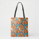 Tote Bag with an illustration of retro flowers in vintage colours blue and orange giving off a retro mid-century vibe.