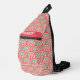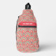 This stylish sling bag features an all-over retro floral and geometric pattern in groovy colours and your name on the front. Three zippered compartments can easily store your keys, wallet, phone, camera, and plenty more. Wear it as a crossbody or over one shoulder, and attach the adjustable strap to a durable D-ring on the side of your choice. Made of polyester poplin, the bag is fully lined and measures 13.5" x 9". Exterior front pocket is 6.5" deep x 5.5" wide, interior zippered pocket is 4.5" x 4.5" with a compartment organiser, back zipper pocket is 6" wide x 5.5" deep". Comes with a rugged adjustable 27"-38" waist/crossbody strap with a plastic swivel connector. (Spot clean/dry clean only.) Create for yourself or give as a gift. MATCHING items in our travel collection.