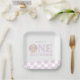 Celebrate your groovy girls very first birthday party with our playful lavender chequered 'ONE RAD CHICK' birthday disposable paper plates tableware. This design features an easy-to-love happy face with peace sign glasses and dusty pink wavy chequered patterns.