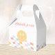 Celebrate your little girls big day in style with our colourful retro chequered happy face party favour boxes, featuring wavy pastel checkers and a totally stellar happy face.