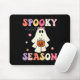 Groovy Halloween Ghost Holding Pumpkin Spooky Seas Mouse Pad