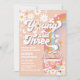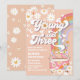 Celebrate your little ones special day with this retro hippie birthday invitation featuring a peach background, daisies, rainbows, butterflies, and a flower-power van. Perfect for a "Young, Wild & Three- theme, this colourful design brings peace, love, and fun to your childs party. Customise with your details and set the tone for a groovy celebration that guests will remember. Ideal for kids birthday parties with a retro, boho, or 1960s vibe.